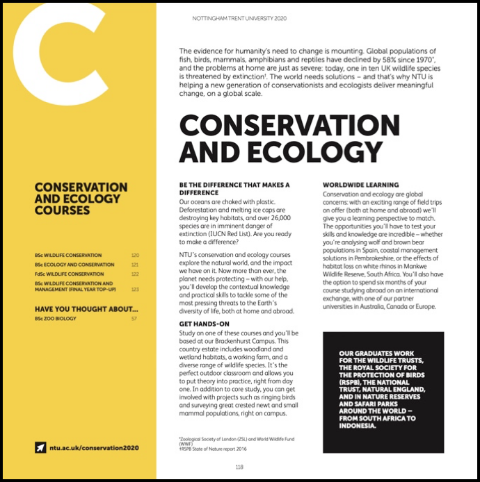 The undergraduate prospectus is the annual flagship publication in NTU’s marketing calendar. Each year this requires collaborating with designers, photographers, academics and marketers to produce an engaging and up-to-date showcase of the university, its courses, and Nottingham itself.
